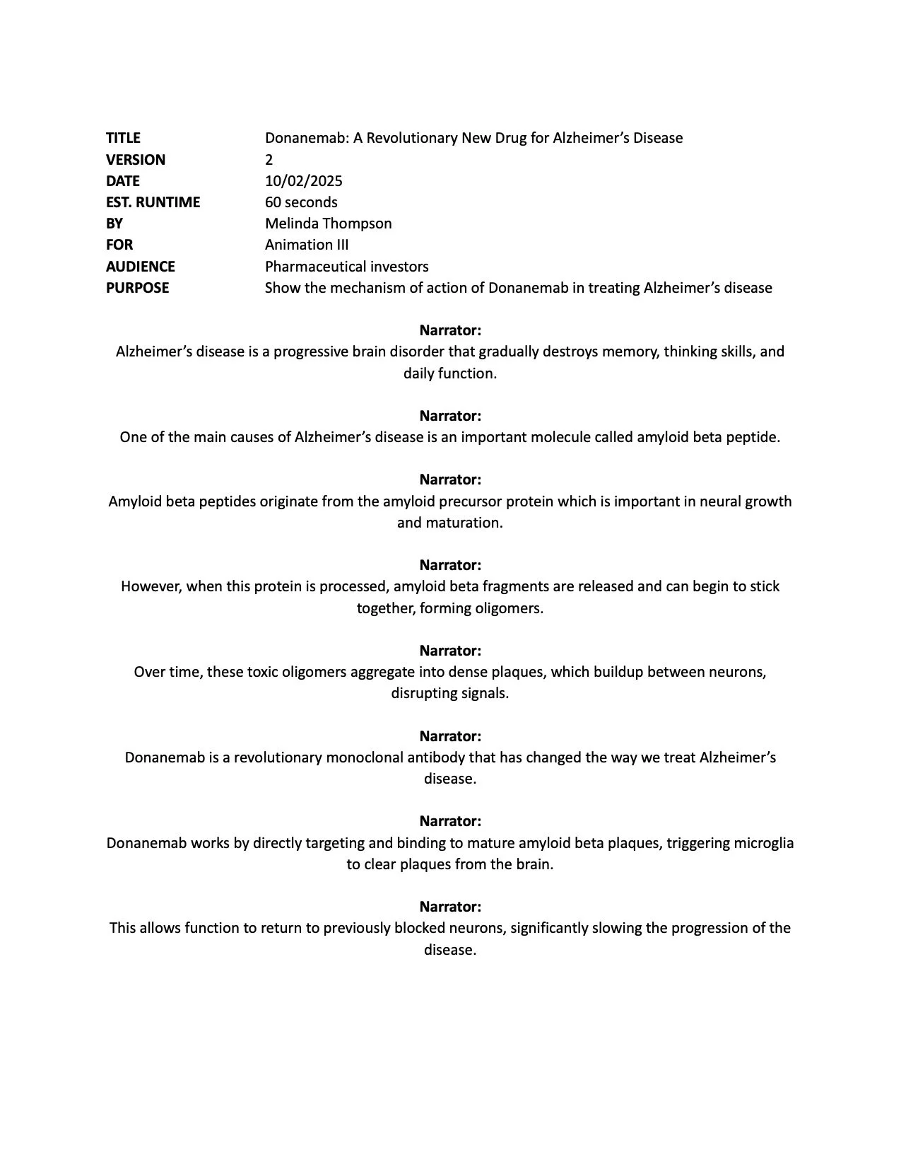 This mechanism of disease animation illustrates the role of amyloid beta proteins in the development of Alzheimer’s disease. Additionally, it introduces a revolutionary new drug, Donanemab, and explains its role in treating the disease.